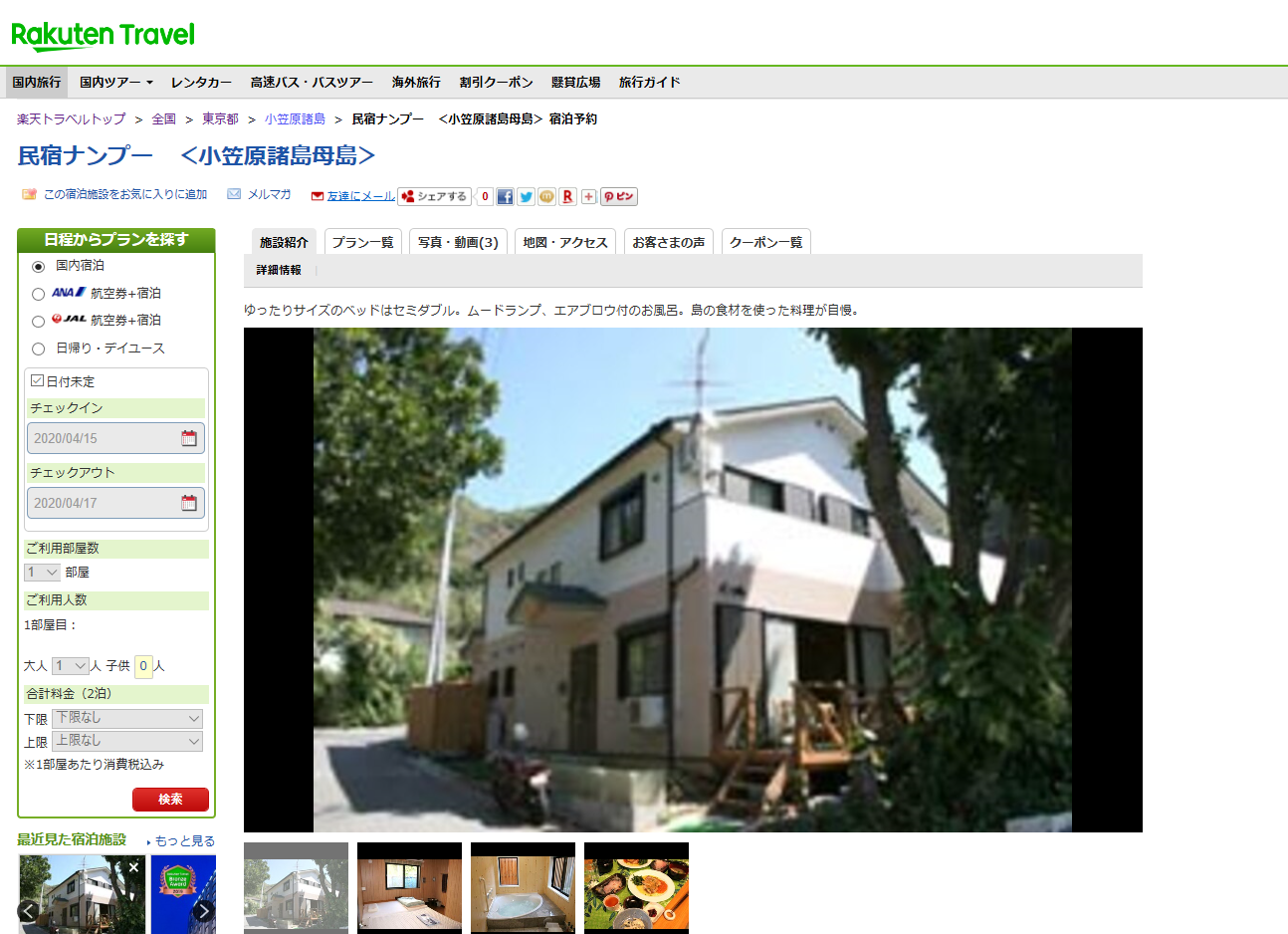 母島の宿はこちら。