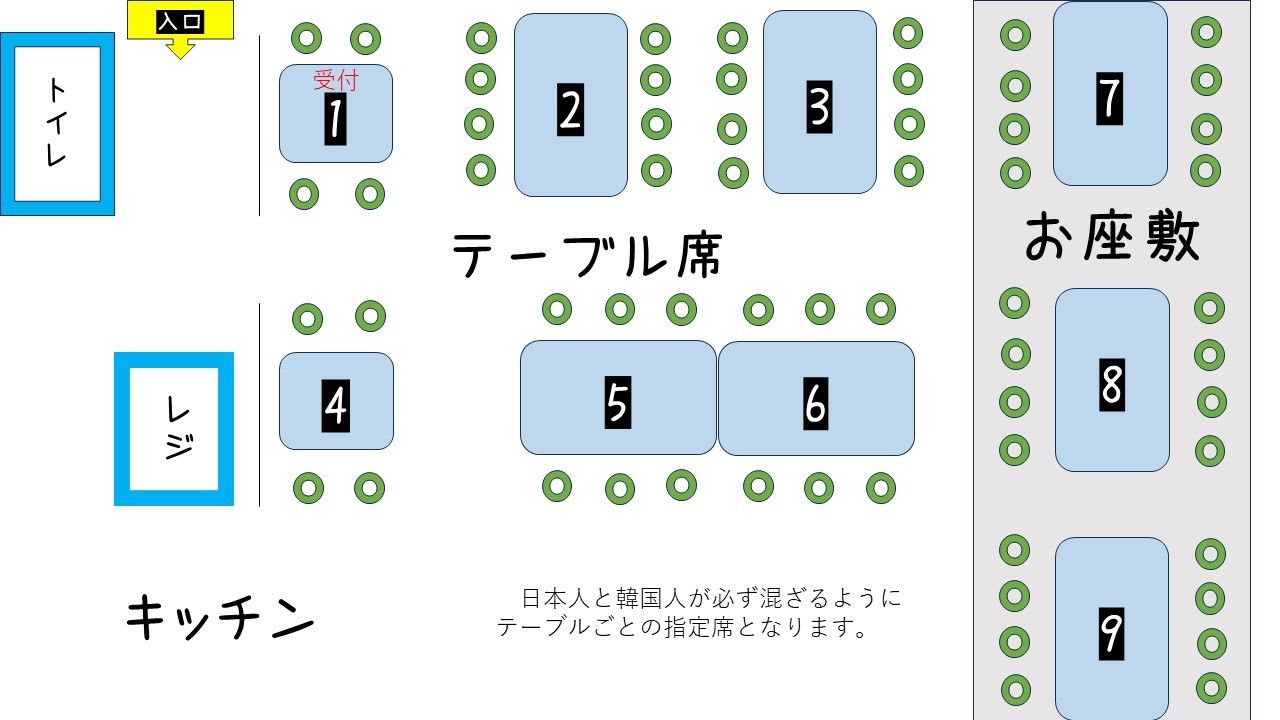 일주일 전 시점에서 참가자 수가 적을 경우에는 가게에 보고하지 않으면 안 되게 되었습니다. 그런 점은 신오쿠보 때보다 엄격합니다. 1주일전의 참가신청자수로 제가 정원을 판단하므로 가능한한 그 때까지 신청을 부탁드립니다. 정원을 줄여서 보고한 다음에 일반 손님으로부터 예약이 들어온 경우에는 그 뒤에 급증해도 정원을 늘릴 수가 없습니다.