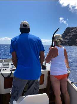前日にシュノーケリングの予約を入れていたので、宿の車で港へ。約束の10時にダイビングショップ前に行くが誰もいないし閉まっている。待っていると人が来てこっちだと。船着き場からタグボートでシュノーケリング用の船へ。ドイツ人のおばちゃんたち6人組とイギリス人の同年代?と。