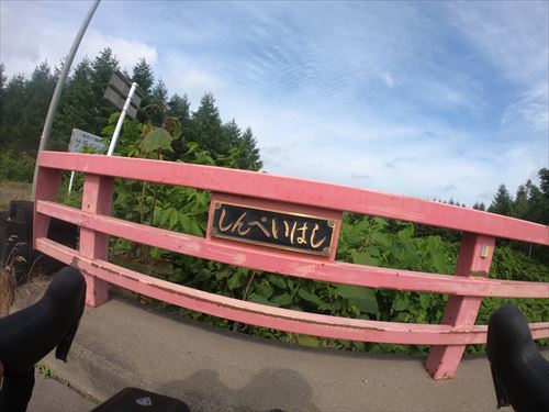しばらく走っているとしんぺい橋!!私の名前と同じ!!自転車でなかったら気づかなかったであろう。見た目は40歳くらいかと思いきや平成2年生まれ!(竣工)