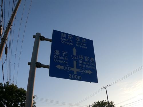 近くの島には野生の馬がいるらしい。日本とは思えない風景を観ながら根室に到着!根室市内の看板はロシア語が!