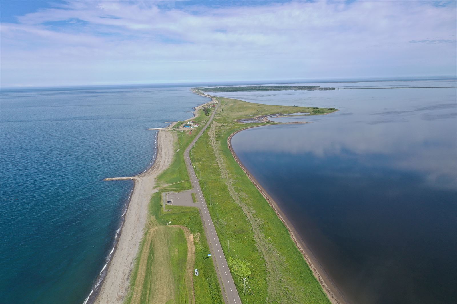 夜は土砂降り、朝も雨が降ってた根室。袋小路になってるので厚床まで一昨日通った同じ道を30キロほど逆方向に進む。北へ向かうと一気に車は少なくなって、ひとけもない。コンビニや自販もなくなったー!けど、平坦だしなんと!天気予報外れて晴れてきたー!Facebookの投稿で知った野付半島!晴れたので良い景色ー!!でも、付け根から片道18キロあったので途中の駐車場まで!ここの地形はドローンの見せ所!!