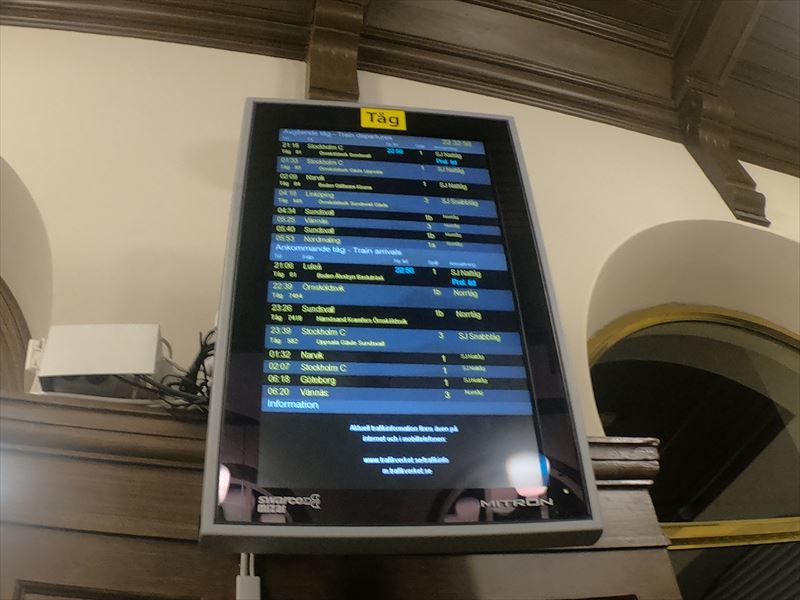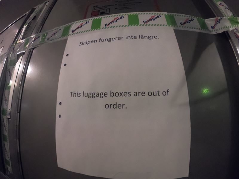 12時近くの電車でウメオへ向かう。4時間ほどで到着。夕方の4時くらいだがすでに真っ暗!駅にはロッカーの案内看板あるのだが、なくなっているー!宿泊するわけではないので預けたい!隣にバスターミナルがあるので、そちらで預かってもらおうとするがロッカーがなんと壊れている!!