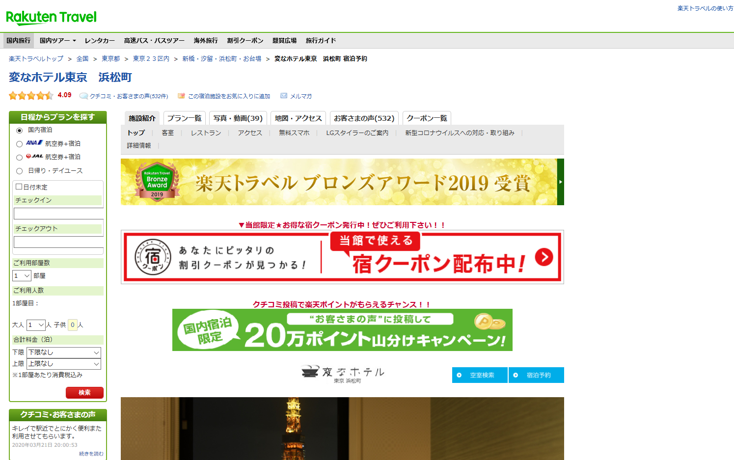 変なホテル 浜松町(楽天トラベル)