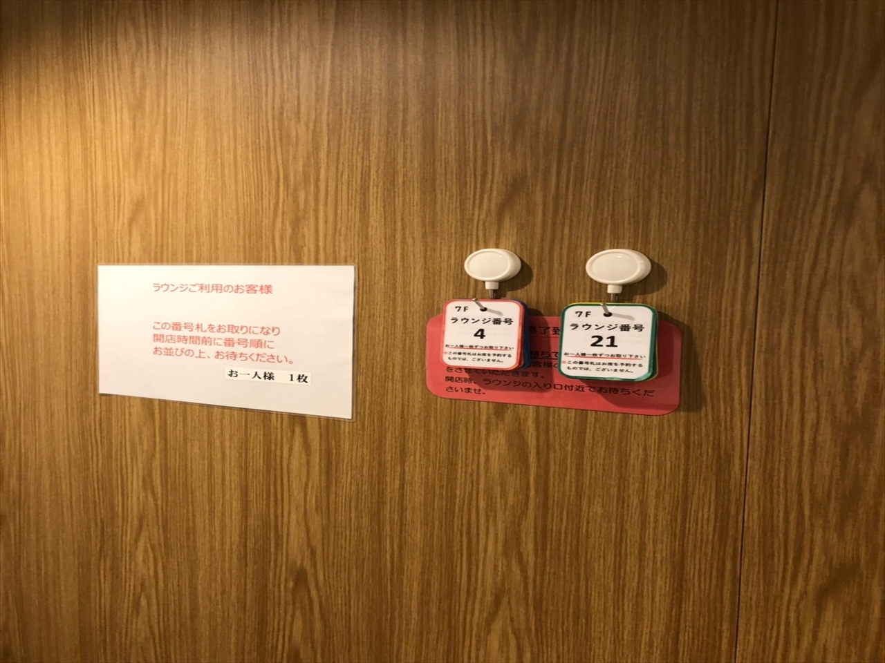 ラウンジの入口付近に写真のようにかかっている。めでたく1,2,3番を確保!