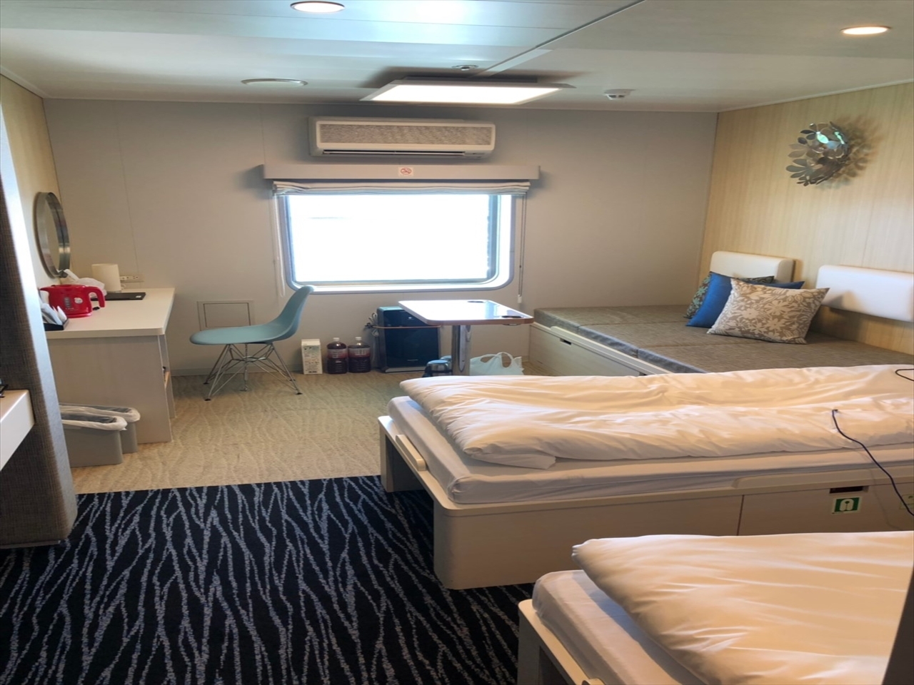 帰りはいろいろあって行きとあまり変わらない金額で特一等室。飲みの会場にもなって良いな。
