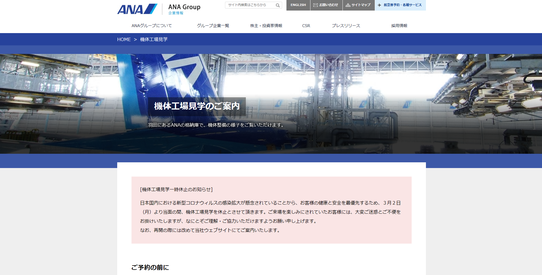 ANA機体工場見学公式HP