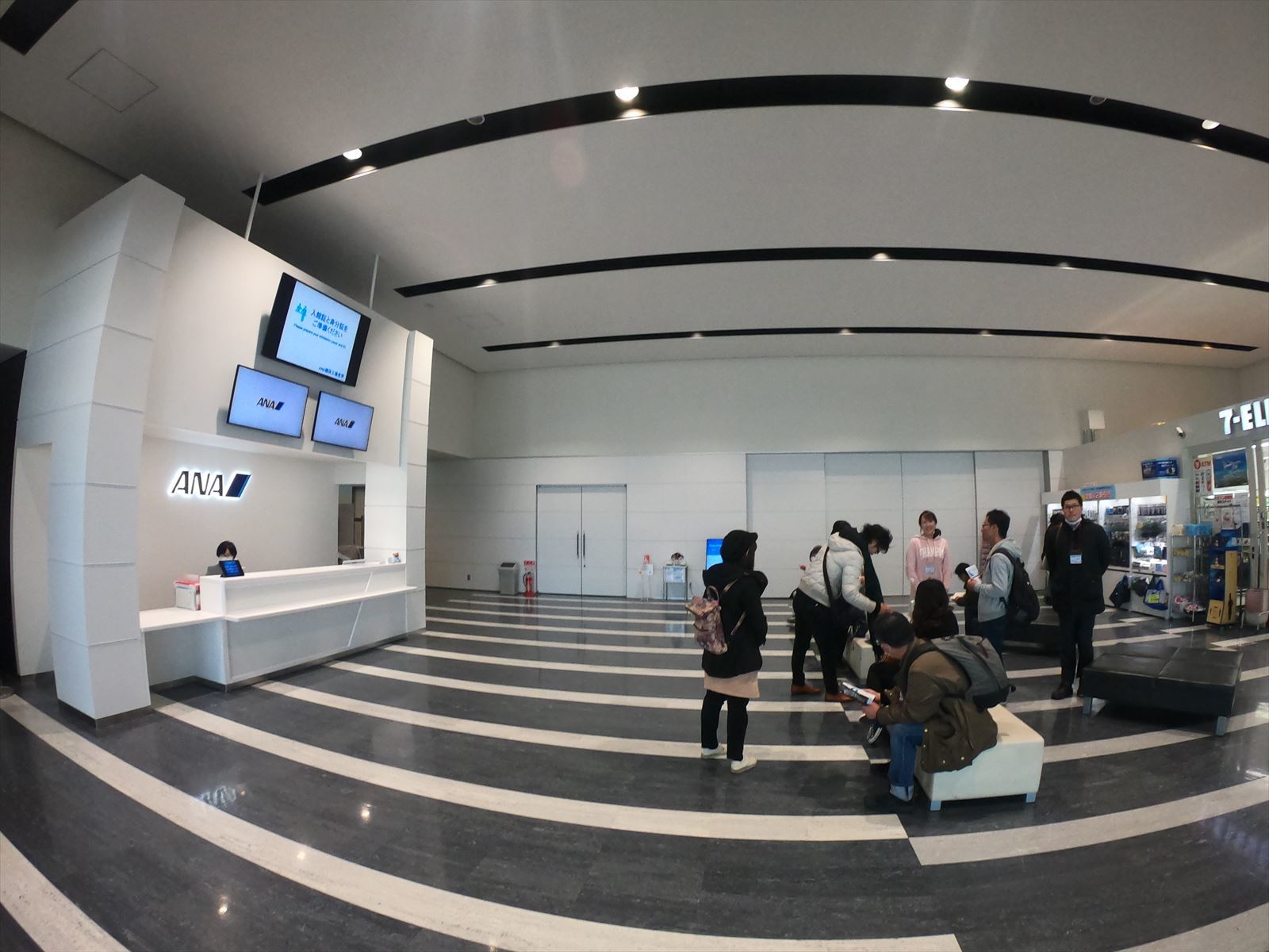 駅前にはなのもなく、少し歩いたところにファミリーマートが。カップルや少人数で行くなら別だが、機体工場の受付の前にはANAグッズのお土産屋、小規模だがセブンイレブンもあり、椅子も十分あるのでそちらで集合することをおススメする。当日、建物の前で警備員による入館証(メールに届くのでコピーして持参)を提示。