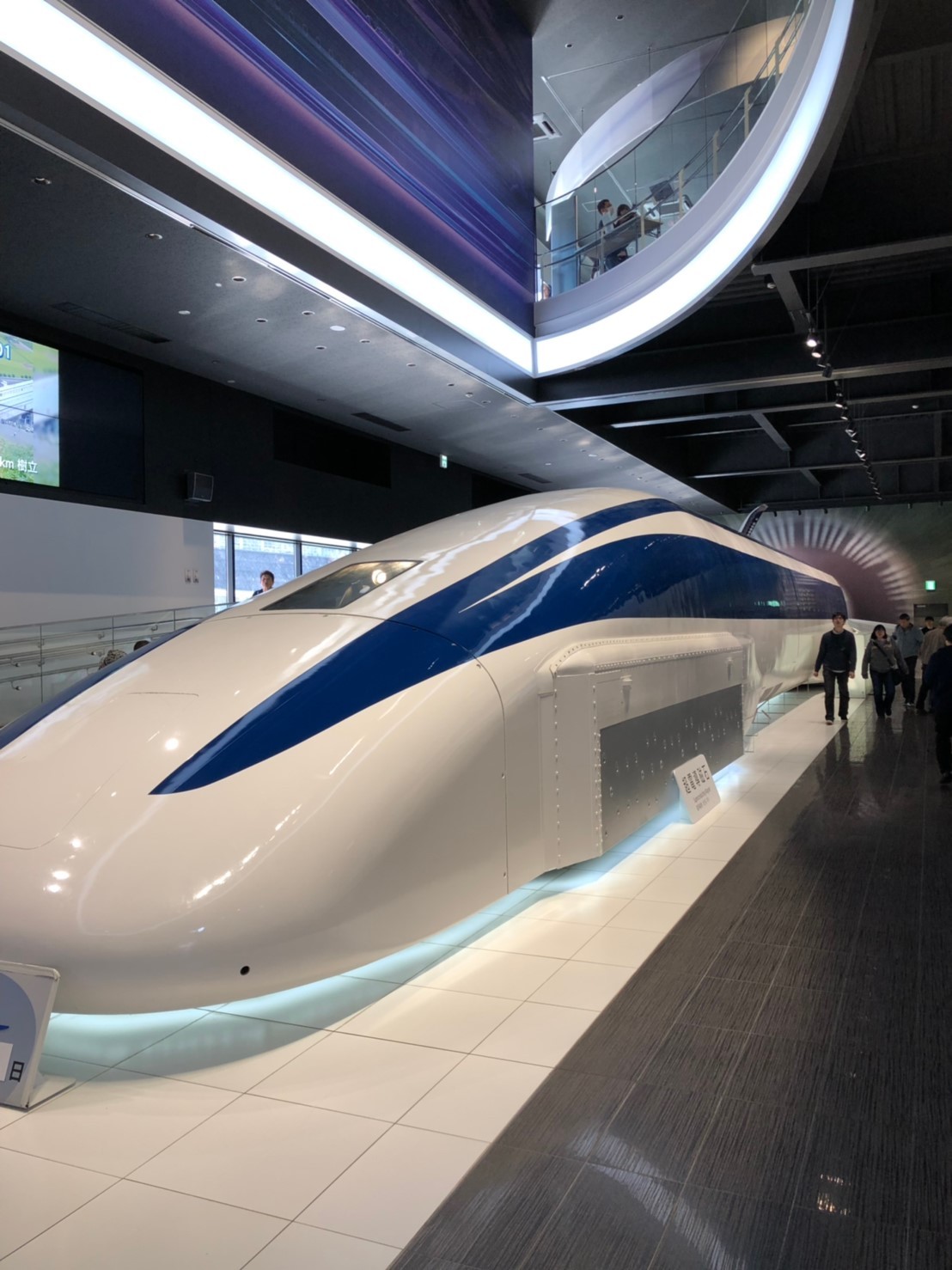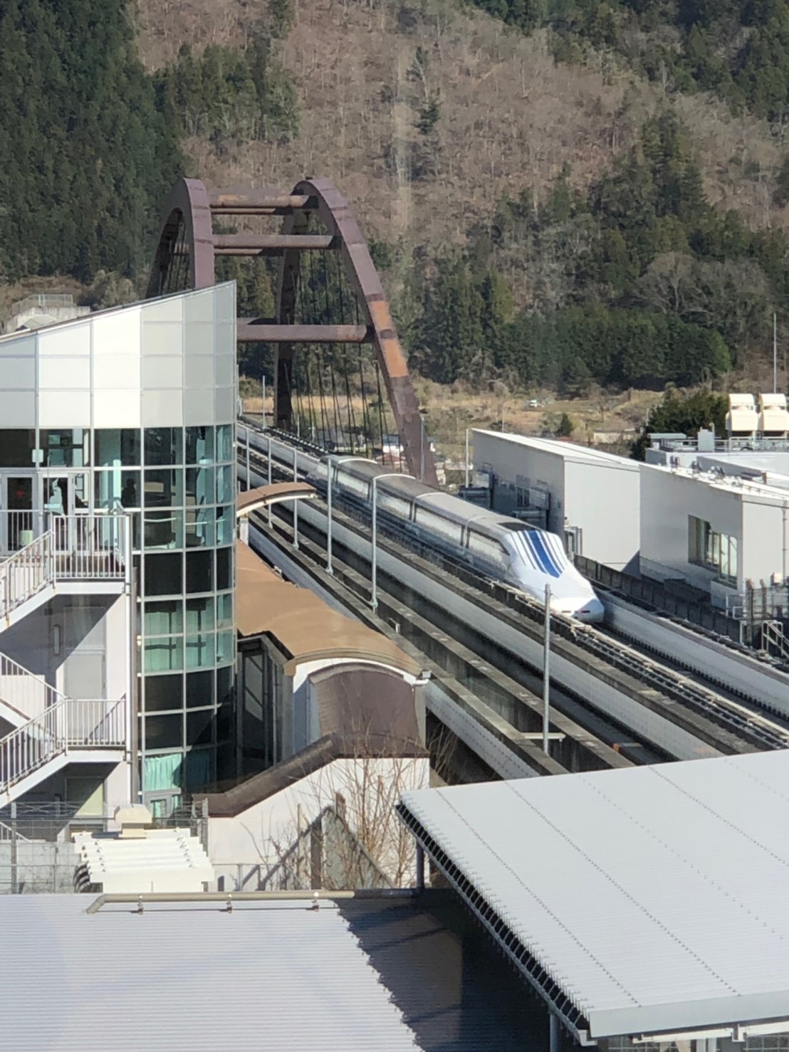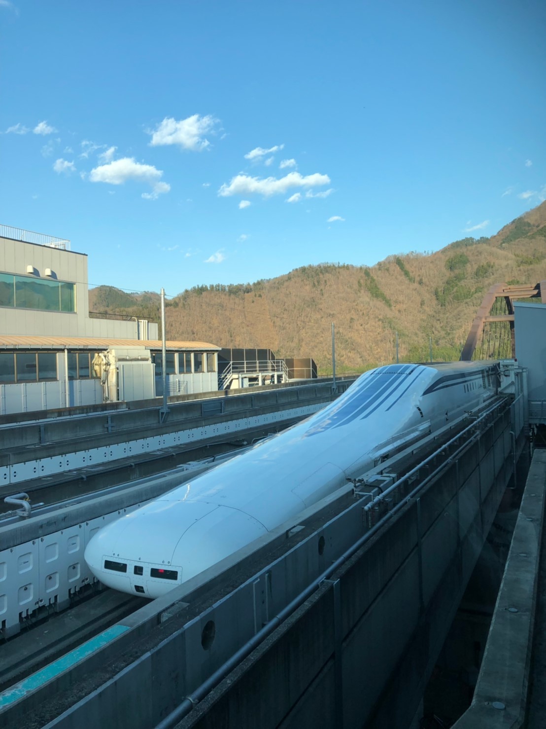 完成されれば東京から名古屋まで約40分で結ばれるとのこと。その区間のうち山梨県の一部が今回来ている実験線。大月付近から甲府盆地なんてあっという間!これは知らなかったのだが、時速170キロくらいまではタイヤで走行、飛行機と同じような感覚がありそれ以上になるとふわっと浮き500キロに到達―!